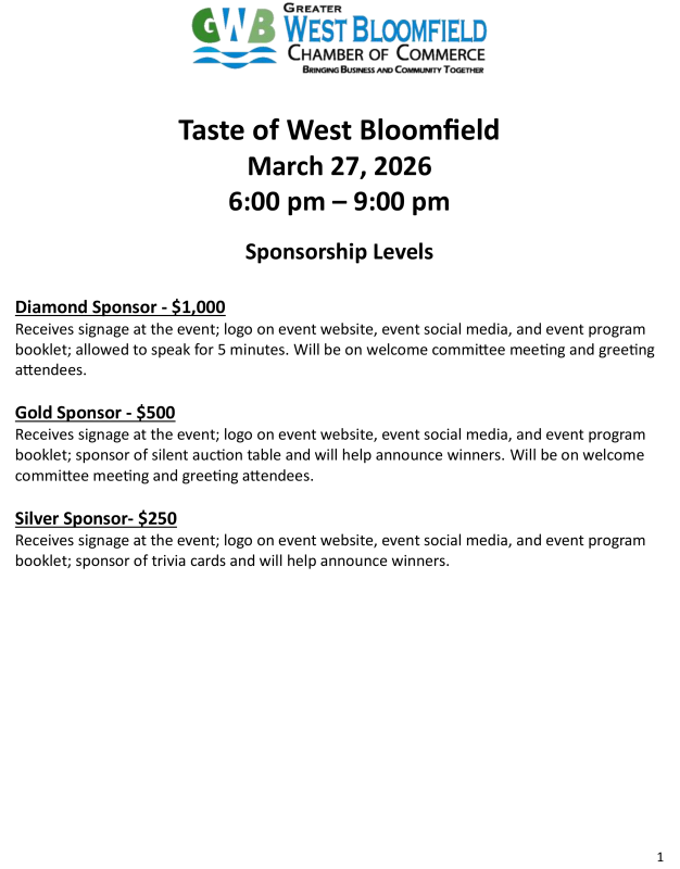 2026 Taste of West Bloomfield – March 27, 2026
